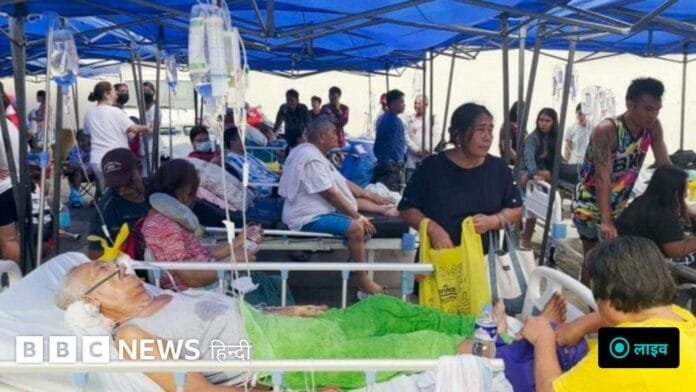 इमेज स्रोत, PTV Cebuइमेज कैप्शन, भूकंप के बाद अस्पताल के बाहर मरीजों का इलाज़ किया जा रहा है.मंगलवार रात फ़िलिपींस में 6.9 तीव्रता का भूकंप आया. इस भूकंप से कई इमारतें ढह गईं और कम से कम 26 लोगों की मौत हो गई है और 147 लोग घायल हैं.अधिकारियों का कहना है कि मलबे में दबे लोगों को निकालने का काम जारी है और मृतकों की संख्या बढ़ सकती है. अमेरिकी भूगर्भ सर्वेक्षण के अनुसार, इस भूकंप का केंद्र सेबू प्रांत के बोगो शहर से करीब 19 किलोमीटर उत्तर-पूर्व और गहराई लगभग 10 किलोमीटर थी. शुरू में सुनामी की चेतावनी दी गई थी, लेकिन बाद में इसे वापस ले लिया गया. राहत और बचाव दल प्रभावित इलाकों में तैनात हैं और स्थानीय प्रशासन ने लोगों से सतर्क रहने की अपील की है.सेबू की गवर्नर पामेला बारिकुआत्रो मंगलवार को बोगो शहर पहुंचीं हैं और वहां राहत केंद्र बनाने का काम शुरू किया गया है.