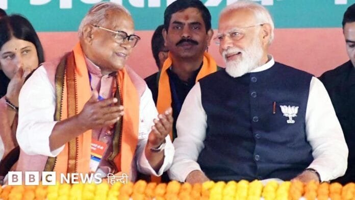 इमेज स्रोत, ANIइमेज कैप्शन, बिहार विधानसभा चुनाव के दो चरणों में मतदान 6 और 11 नवंबर को होंगे12 अक्टूबर 2025अपडेटेड 48 मिनट पहलेबिहार विधानसभा चुनाव 2025 के लिए एनडीए गठबंधन ने सीट बंटवारे की घोषणा कर दी है.243 सीटों वाली बिहार विधानसभा के लिए बीजेपी और जेडीयू 101-101 सीटों पर चुनाव लड़ेंगी.वहीं लोक जनशक्ति पार्टी (रामविलास) 29 सीटों और राष्ट्रीय लोक मोर्चा (आरएलएम) और हिंदुस्तानी आवाम मोर्चा (एचएएम) 6-6 सीटों पर चुनाव लड़ेंगी.केंद्रीय मंत्री और बीजेपी नेता धर्मेंद्र प्रधान ने एक्स पर पोस्ट किया, “हम एनडीए के साथियों ने सौहार्दपूर्ण वातावरण में सीटों का वितरण पूर्ण किया. एनडीए के सभी दलों के कार्यकर्ता और नेता इसका हर्षपूर्वक स्वागत करते हैं.”बीबीसी हिंदी के व्हॉट्सऐप चैनल से जुड़ने के लिए यहाँ क्लिक करेंलोक जनशक्ति पार्टी (रामविलास) के अध्यक्ष चिराग पासवान ने एक्स पर पोस्ट किया , “हम एनडीए परिवार ने सौहार्दपूर्ण वातावरण में बिहार विधानसभा चुनाव 2025 के लिए सीटों का बंटवारा पूरा किया है.”किसने क्या कहा?बीजेपी नेता और बिहार प्रभारी विनोद तावड़े ने एक्स पर लिखा है, “संगठित व समर्पित एनडीए. आगामी बिहार विधानसभा चुनाव के लिए एनडीए परिवार के सभी सदस्यों ने सौहार्दपूर्ण वातावरण में आपसी सहमति से सीटों का वितरण पूर्ण किया.””एनडीए के सभी दलों के नेताओं और कार्यकर्ताओं ने इस निर्णय का हर्षपूर्वक स्वागत किया है. सभी साथी कमर कस चुके हैं और बिहार में फिर से एनडीए सरकार बनाने के लिए संकल्पित हैं.”सीट बंटवारे के बाद जेडीयू के नेता राजीव रंजन प्रसाद ने समाचार एजेंसी एएनआई से कहा कि “विजय अभियान का श्रीगणेश हो गया है, रणभेरी बज गई है और यह शानदार आगाज़ है.”उन्होंने कहा, “पांचों दलों की बैठकें लगातार हो रही थीं और अब सीट शेयरिंग का एलान हो गया है. पूरे दमखम के साथ लड़ेंगे और जीत दर्ज करेंगे.”सीट बंटवारे के फॉर्मूले के सवाल पर बीजेपी नेता अजय आलोक ने समाचार एजेंसी एएनआई से कहा कि इसमें कमोबेश वही फॉर्मूला था जो लोकसभा में था.उन्होंने कहा, “लोकसभा चुनाव जिस अनुपात में लड़ा गया उसी अनुपात में यह चुनाव लड़ा जा रहा है. शुरू से सबके बीच इसकी सहमति थी और सौहार्दपूर्ण वातावरण में सबकुछ हो गया.”इमेज स्रोत, Getty Imagesइमेज कैप्शन, सीट बंटवारे को हिंदुस्तानी आवाम मोर्चा के नेता जीतन राम मांझी ने ‘आलाकमान का निर्णय’ बताया हैक्या कोई नाराज़ भी है?एनडीए गठबंधन में कथित नाराज़गी के सवाल पर अजय आलोक ने कहा कि कोई नाराज़गी नहीं है और सभी नेताओं ने सोशल मीडिया पर सीट बंटवारे को लेकर उत्साह दिखाया है.वहीं आरजेडी नेता मृत्युंजय तिवारी ने कहा कि “एनडीए का सीट शेयरिंग का फॉर्मूला भले ही तय हो गया हो लेकिन एनडीए में ऑल इज़ नॉट वेल है य
