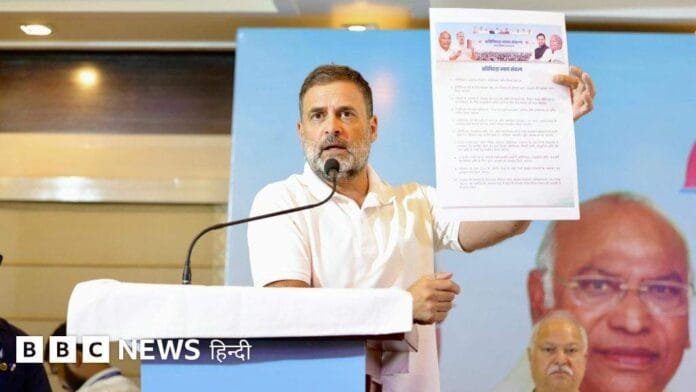 इमेज स्रोत, INC….मेंबिहार में महागठबंधन के नेताओं ने 24 सितंबर को एक घोषणा करते हुए कहा कि एससी/एसटी एक्ट की तर्ज़ पर अति पिछड़ा अत्याचार निवारण अधिनियम पारित किया जाएगा.कांग्रेस अध्यक्ष मल्लिकार्जुन खड़गे, लोकसभा में नेता प्रतिपक्ष राहुल गांधी, बिहार विधानसभा में नेता प्रतिपक्ष तेजस्वी यादव सहित महागठबंधन के अन्य नेताओं ने ‘अति पिछड़ा न्याय संकल्प’ बैठक में हिस्सा लिया.बुधवार को हुई इस बैठक में ‘पटना उद्घोषणा’ के नाम से अति पिछड़ा आबादी के लिए 10 वादे किए गए. यह एक तरह से महागठबंधन के चुनावी घोषणा पत्र का पहला हिस्सा है जिसे सभी घटक दलों ने रिलीज़ किया.बीबीसी हिंदी के व्हॉट्सऐप चैनल से जुड़ने के लिए यहाँ क्लिक करेंअति पिछड़ा प्रतिनिधियों के साथ बातचीत में राहुल गांधी ने कहा, “हम लोगों ने अति पिछड़ा महिलाओं, छात्रों, संगठनों से पूछकर ये पटना उद्घोषणा तैयार की है. यह अतिपिछड़ा वर्ग की आवाज़ है, जिसे हम लागू करने जा रहे हैं. यह हमारी गारंटी है. बिहार में अति पिछड़ा, दलितों, पिछड़ा सभी को भागीदारी मिलनी चाहिए. नीतीश कुमार आपसे वोट ले रहे थे और आपका इस्तेमाल कर छोड़ दे रहे थे.”वहीं, तेजस्वी यादव ने अति पिछड़ों और दलितों को ‘पॉलिसी मेकिंग’ में हिस्सेदारी नहीं मिलने को लेकर सवाल किया. बुधवार सुबह कांग्रेस कार्य समिति (सीडब्ल्यूसी) की एक विस्तारित बैठक भी पटना में आयोजित की गई थी. ऐसे में आगामी विधानसभा चुनाव को देखते हुए बिहार में कांग्रेस पहली बार सीडब्ल्यूसी की बैठक करके क्या संदेश देना चाहती है? अति पिछड़ा आबादी के लिए 10 वादों के मायने क्या हैं? क्या यह बिहार में 36 फ़ीसदी अति पिछड़ा आबादी को साधने की कोशिश है?इमेज स्रोत, INCअति पिछड़ों के लिए 10 वादेबिहार की राजनीति में अति पिछड़े बहुत महत्वपूर्ण जाति समूह हैं. 112 जातियों का ये समूह बिहार में आबादी के लिहाज़ से सबसे बड़ा है.अति पिछड़ा आबादी नीतीश कुमार का कोर वोटर है और बिहार की राजनीति के जानकार मानते हैं कि आरजेडी के ‘एमवाई समीकरण में एम यानी यादवों की वजह से अति पिछड़ा वोट महागठबंधन से छिटकता है. ख़ुद तेजस्वी यादव भी कई मौकों पर कहते रहे हैं, “सबको साथ लेकर चलना होगा और यादवों को बड़े भाई की तरह अतिपिछड़ों के लिए बड़ा दिल करना होगा.”महागठबंधन ने अति पिछड़ा आबादी से जो वादे किए हैं, उसमें अति पिछड़ा अत्याचार निवारण अधिनियम पारित करने के अलावा और भी कई बातें हैं:पंचायत और नगर निकाय में आरक्षण 20 फ़ीसदी से बढ़ाकर 30 फ़ीसदी करना.आबादी के अनुपात में आरक्षण बढ़ाने के लिए विधानमंडल से पारित कानून को संविधान की नौवीं अनुसूची में डालना.नियुक्तियों में ‘नॉट फाउंड सुटेबल’ (NFS) को अवैध घोषित करना.अल्प या अति समावेशन से संबंधित मामलों को कमिटी बना