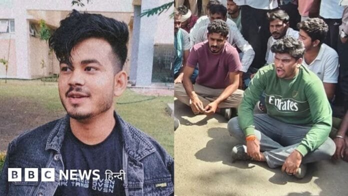 इमेज कैप्शन, मृतक उदित गायकी (बाएं) और लखन यादव के परिजन (दाएं) पुलिस पर मारपीट का आरोप लगा रहे हैं….मेंमध्य प्रदेश में कथित तौर पर पुलिस की मारपीट से दो लोगों की मौत का मामला सामने आया है.आरोप है कि राजधानी भोपाल में 22 साल के इंजीनियरिंग के छात्र उदित गायकी की पुलिसकर्मियों ने पिटाई की, जिसके कुछ घंटे बाद उनकी मौत हो गई.वहीं, अशोक नगर ज़िले में नौ अक्तूबर को 50 साल के लखन यादव की मौत हुई. परिजनों का आरोप है कि पुलिस की पिटाई के बाद लखन की मौत हो गई.पिपलानी थाना प्रभारी चंद्रिका यादव ने बीबीसी हिन्दी को बताया, “उदित गायकी की पोस्टमॉर्टम रिपोर्ट में गंभीर चोट से हुई मौत की पुष्टि के बाद दो कॉन्स्टेबल पर हत्या का मामला दर्ज किया गया है.”अशोक नगर में ज़िला कलेक्टर ने लखन यादव की मौत के मामले में मजिस्ट्रियल जांच के आदेश दिए हैं.दो अलग-अलग ज़िलों में हुई मौतों के बाद मध्य प्रदेश पुलिस पर गंभीर सवाल उठे हैं. पहले भी मध्य प्रदेश से इस तरह के मामले सामने आ चुके हैं.’पुलिस ने किसी शातिर अपराधी की तरह मारा’उदित के परिजनों का आरोप है कि वह कॉलेज से अपने डॉक्यूमेंट्स लेने गए थे.मौत के बाद परिजनों ने शुक्रवार रात पुलिसकर्मियों पर कार्रवाई की मांग करते हुए थाने का घेराव किया.उदित बीटेक फाइनल ईयर के छात्र थे और हाल में बेंगलुरु में नौकरी की तलाश कर रहे थे. तीन दिन पहले ही वह कॉलेज से कुछ डॉक्यूमेंट्स लेने के लिए भोपाल लौटे थे.परिजनों के अनुसार, “9-10 अक्तूबर की रात दोस्तों के साथ लौटते समय पुलिस ने उसे रोक लिया और उसकी पिटाई की. कुछ घंटों बाद उदित की मौत हो गई.”घटना भोपाल के पिपलानी थाना क्षेत्र के इंद्रपुरी सेक्टर-सी की है.इस घटना का वीडियो सोशल मीडिया पर वायरल है. वीडियो में उदित बिना शर्ट के दिखाई दे रहे हैं, जबकि एक पुलिसकर्मी उन पर लगातार डंडे से वार करता दिख रहा है.परिजनों ने बीबीसी से बातचीत के दौरान दावा किया कि वीडियो में उदित बिना शर्ट के दिखाई दे रहे हैं, जबकि एक पुलिसकर्मी उन पर लगातार डंडे से वार करता दिख रहा है.बीबीसी हिन्दी से बात करते हुए उदित के मामा शुभम गावंडे ने कहा, “वह 22 साल का छात्र था, जिसे पुलिस ने किसी शातिर अपराधी की तरह मारा. ऐसा कौन सा गुनाह किया था उसने कि उसे इतनी बुरी तरह पीटा गया?”यह कहते हुए शुभम रो पड़ते हैं. वह उस वक्त उदित के अंतिम संस्कार में शामिल होने के लिए भोपाल के श्मशान घाट पहुंचे थे.उन्होंने कहा, “बहुत सीधा बच्चा था. बेंगलुरु गया था नौकरी की तलाश में और तीन दिन पहले ही भोपाल आया था. उसे कॉलेज से कुछ डॉक्यूमेंट्स लेने थे. पुलिसवालों ने इतना मारा कि उसकी मौत हो गई.”पोस्टमॉर्टम में गंभीर चोट से उदित की मौत की पुष्टिइमेज कैप्शन, लखन यादव के रिश्तेदारों ने उनका शव सड़क पर रखकर 