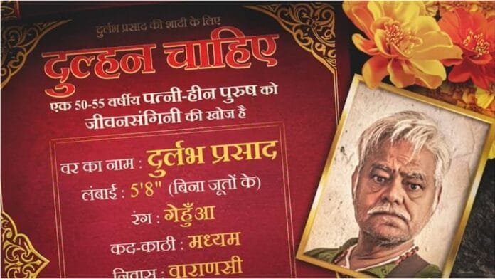 संजय मिश्रा ने अपने इंस्टाग्राम अकाउंट से एक पोस्ट शेयर किया है। इसमें फिल्म का पोस्टर है। पोस्टर इस अंदाज में दिया गया है, जैसा कि अखबारों में वर-वधू की तलाश वाले विज्ञापन दिए जाते हैं। इसमें दुल्हन की तलाश में कोई युवक नहीं, बल्कि 50-55 वर्षीय पुरुष है। शख्स का नाम है दुर्लभ प्रसाद जो वाराणसी में मुंडन स्पेशलिस्ट ‘नाई’ है।