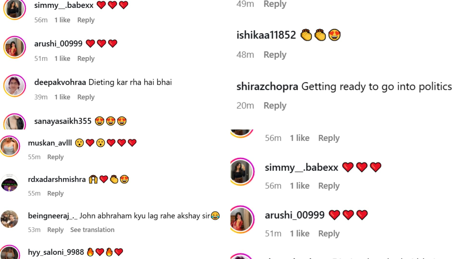 वायरल वीडियो में अक्षय कुमार का लुक काफी बदला सा नजर आया। वह काफी पतले नजर आ रहे हैं। इस बात ने फैंस का ध्यान अपनी तरफ खींचा। एक यूजर ने वायरल वीडियो पर कमेंट किया, ‘डाइटिंग कर रहे हैं, भाई।’ एक अन्य यूजर ने लिखा, ‘जॉन अब्राहम क्यों लग रहे हैं, अक्षय सर।’ एक अन्य फैन ने कमेंट किया, ‘पॉलिटिक्स के लिए रेडी हो रहे हैं?’। कई यूजर ने अक्षय की वायरल वीडियाे पर हार्ट इमोजी के रिएक्शन भी दिए हैं।