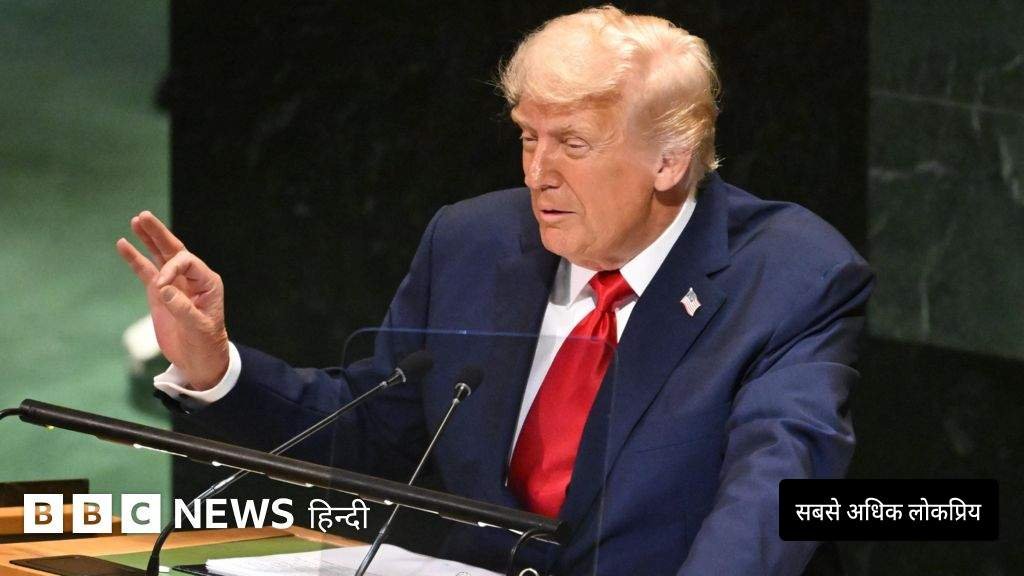 इमेज स्रोत, EPAइमेज कैप्शन, डोनाल्ड ट्रंप ने यूएन महासभा में 56 मिनट से अधिक का भाषण दिया, जो किसी भी