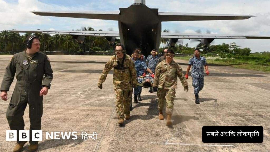 इमेज स्रोत, ISPRइमेज कैप्शन, बांग्लादेश में चटगांव के शाह अमानत हवाई अड्डे पर अमेरिकी वायुसेना के सैनिक ….मेंबांग्लादेश के चटगांव