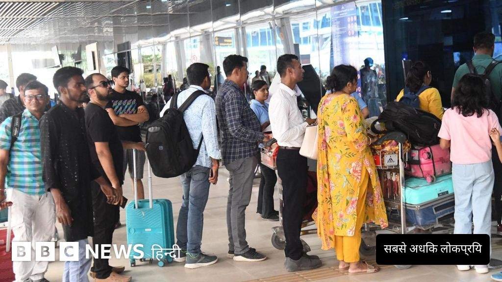 इमेज स्रोत, Santosh Kumar/Hindustan Times via Getty Imagesइमेज कैप्शन, एयरपोर्ट के बाहर कतार में खड़े लोगों की तस्वीर (सांकेतिक तस्वीर)21