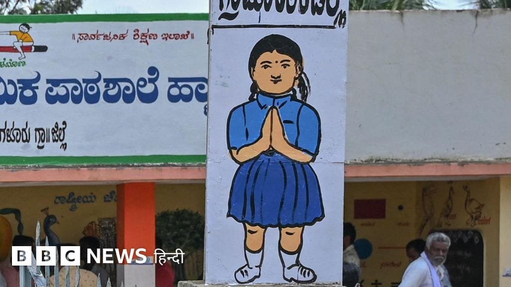 इमेज स्रोत, AFP via Getty Imagesइमेज कैप्शन, कर्नाटक के एक सरकारी स्कूल की पानी की टंकी में श्रीराम सेना के