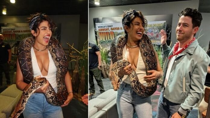 Priyanka Chopra With Python: प्रियंका चोपड़ा ने कुछ ही देर पहले अपने एक पुराने शौक को सोशल मीडिया हैंडल पर फैंस के साथ शेयर किया है। उन्होंने अजगर को गले में लटकाए कई लेटेस्ट तस्वीरें शेयर की हैं।